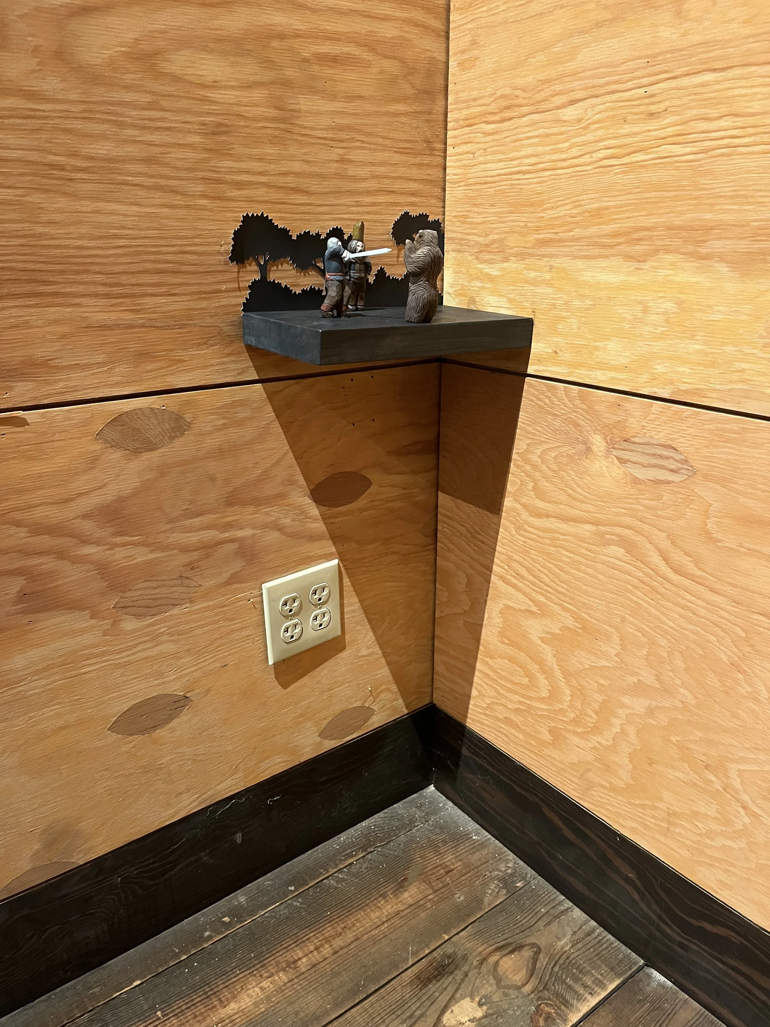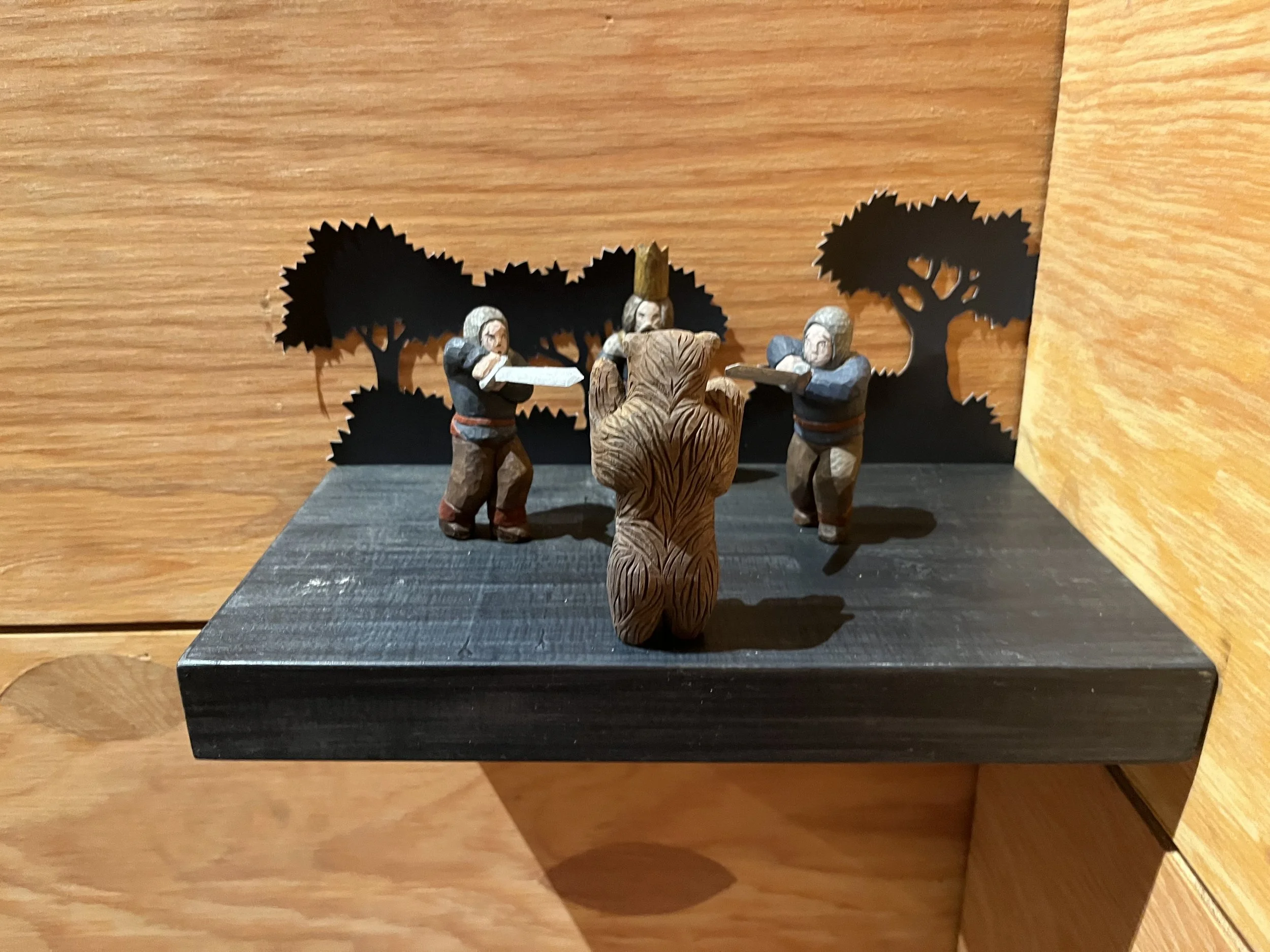 Materials -Cut paper trees, painted basswood inhabitants